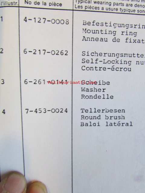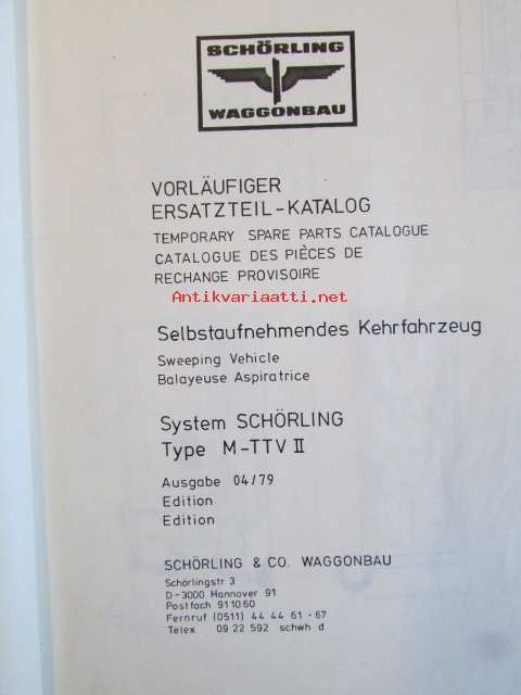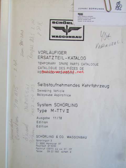 Schönling Waggonbau Selpstaufnehmendes Kehrfahrzeug Sweepin vehicle, Balayeuse Aspiratrice, System Schönling typ M-TTV V -Varaosaluettelo, katso tarkennetut mallimerkinnät kuvasta.