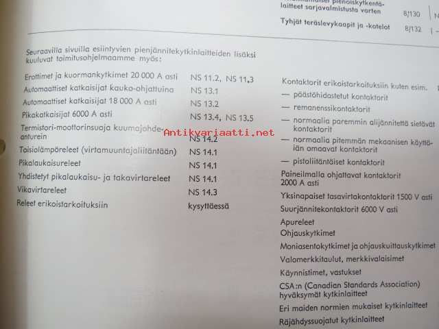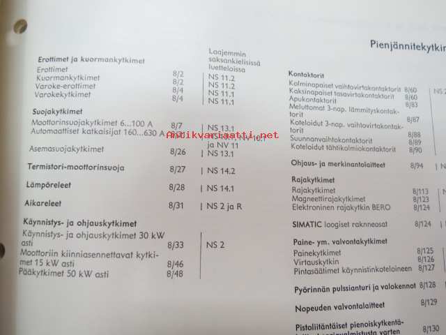 Siemens pienjännitekytkinlaitteet - Vahvavirtatarvikkeet, yleisluettelo, osa 8 elokuu 1969