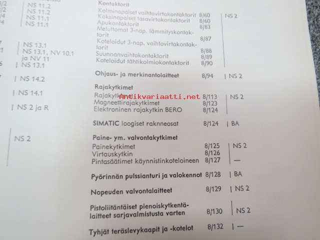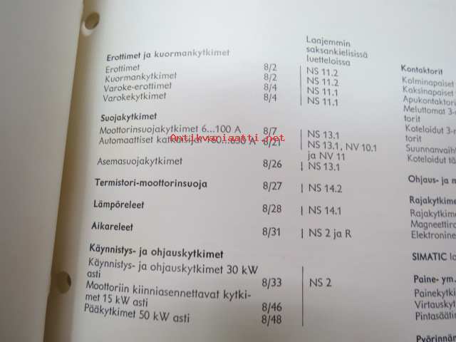 Siemens pienjännitekytkinlaitteet - Vahvavirtatarvikkeet, yleisluettelo, osa 8 elokuu 1969