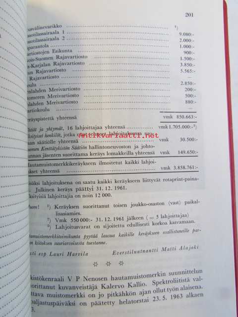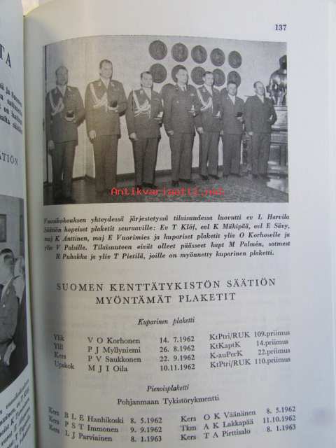 Suomen kenttätykistön säätiö, 196315 x 21 cm.