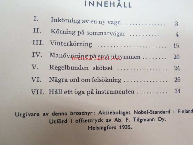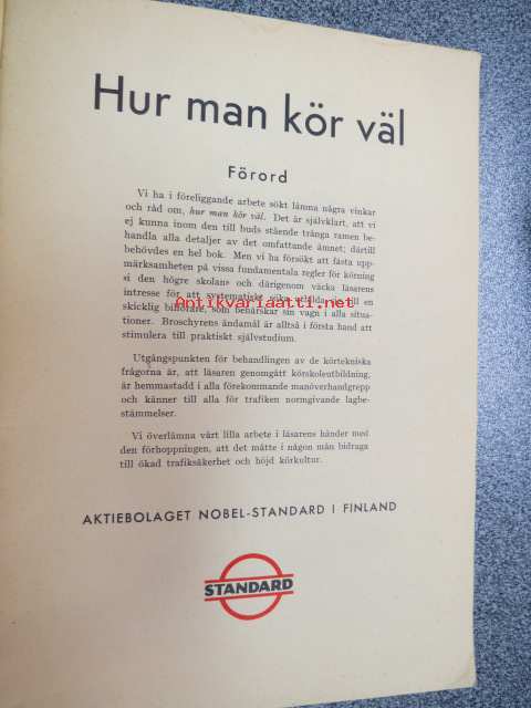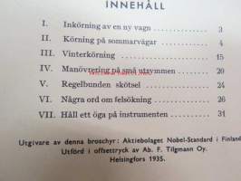 Hur man kör väl - Ab Nobel-Standard i Finland -autoihin ja ajamiseen liittyvää kuvilla havainnollistettua ohjausta, kuvat alunperin amerikkalaisia, mutta
