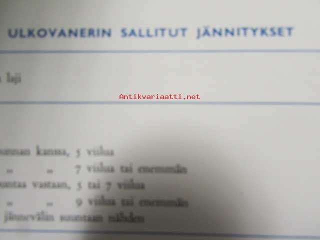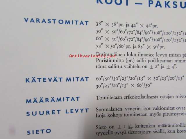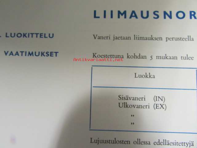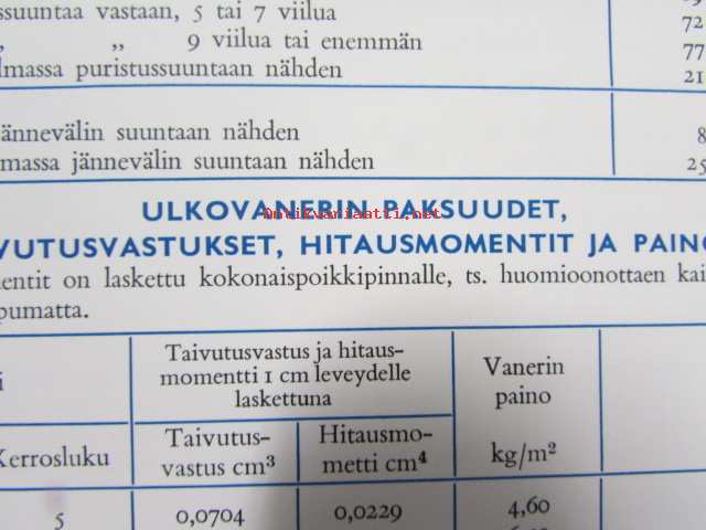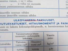 Suomalainen koivuvaneri 1963 -laatuluokitus ja ominaisuudet, tekniset tiedot