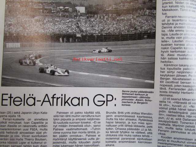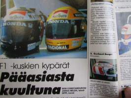 Vauhdin Maailma 1992 nr 4 -mm. VM maistelee Juha Kankusen Monte Lancia Martin Holmes pääsi maiskuttamaan, Formula 1 GP:t Kyalami ja Mexico, F1 Kuskien kypärät,