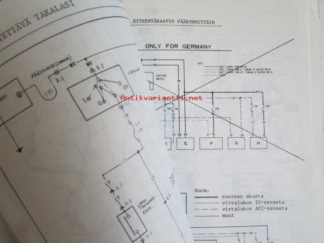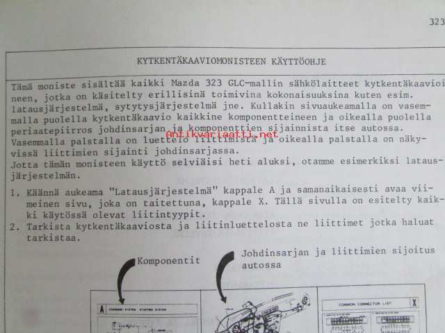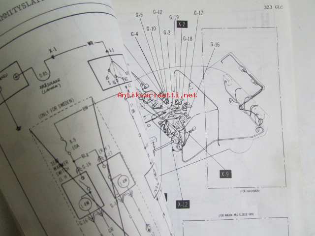 Mazda 323 GLC takaveto etuvalot vm 1980--> -kytkentäkaavio