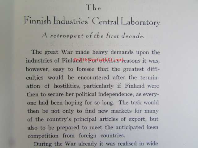 The Finnish Industries' Central laboratory -A retrospect of the first decade