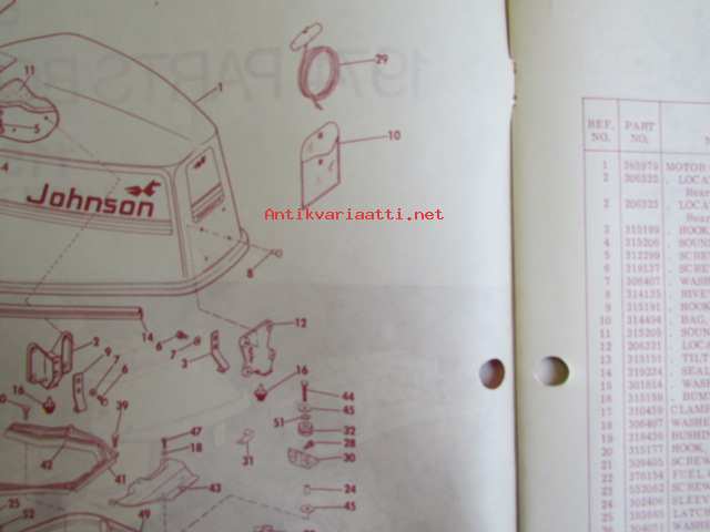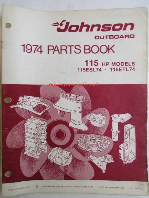 Johnson Outboard 1974 parts book 115 hp -varaosaluettelo, katso tarkemmat mallitiedot kuvasta