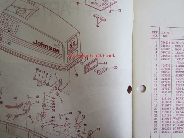 Johnson Outboard 1974 parts book 50 hp -varaosaluettelo, katso tarkemmat mallitiedot kuvasta