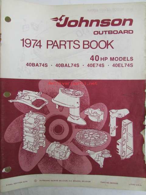 Johnson Outboard 1974 parts book 40 hp -varaosaluettelo, katso tarkemmat mallitiedot kuvasta