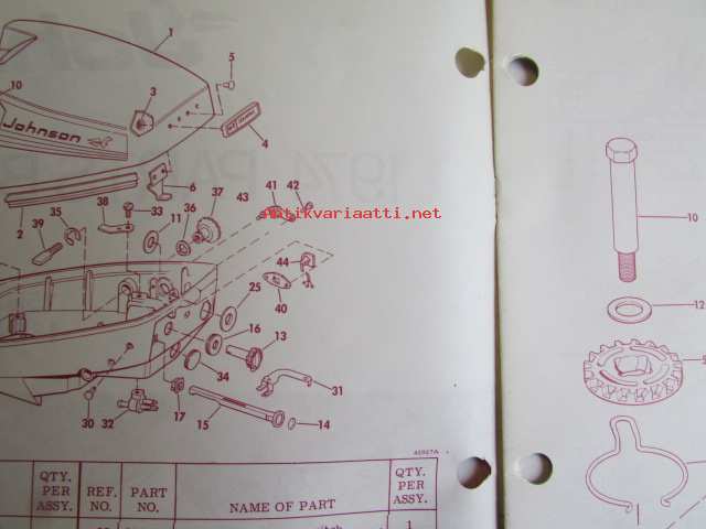 Johnson Outboard 1974 parts book 15 hp -varaosaluettelo, katso tarkemmat mallitiedot kuvasta