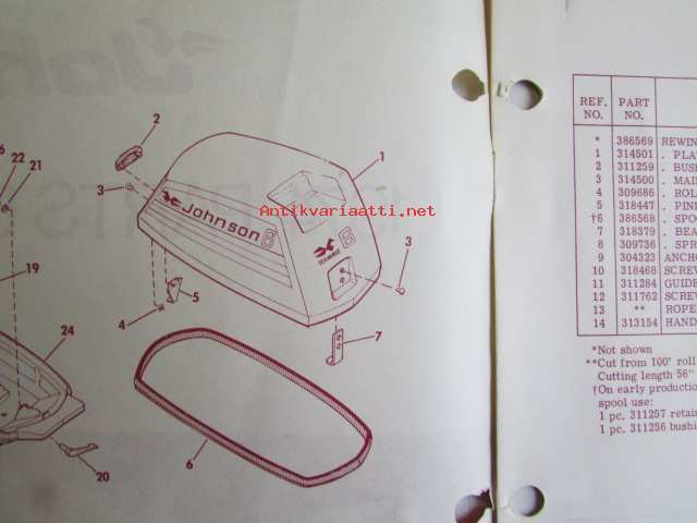 Johnson Outboard 1974 parts book 6 hp -varaosaluettelo, katso tarkemmat mallitiedot kuvasta