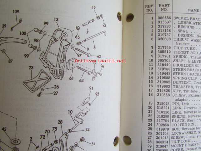 Johnson Outboard 1975 parts book 75 hp -varaosaluettelo, katso tarkemmat mallitiedot kuvasta