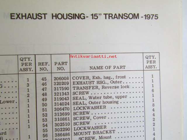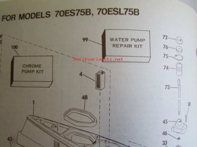 Johnson Outboard 1975 parts book 75 hp -varaosaluettelo, katso tarkemmat mallitiedot kuvasta