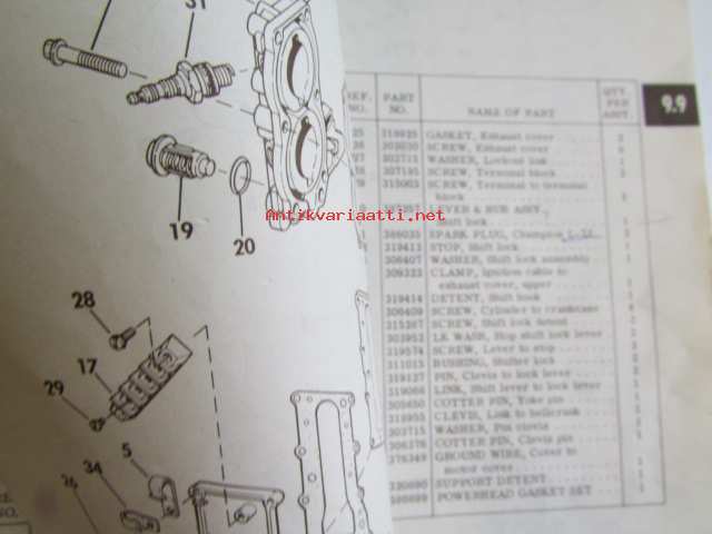 Johnson Outboard 1975 parts book 9.9 hp -varaosaluettelo, katso tarkemmat mallitiedot kuvasta