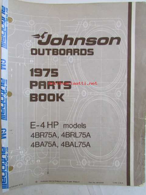 Johnson Outboard 1975 parts book E-4 hp -varaosaluettelo, katso tarkemmat mallitiedot kuvasta