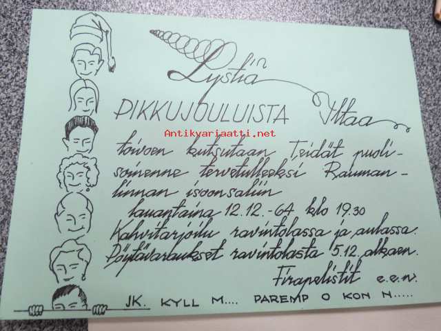 Firapelistit pikkujoulukutsu Raumanlinna 12.12.1964 / Vuorineuvos Paavo Honkajuuri kiitos- / vastauskortti, omakätinen nimikirjoitus