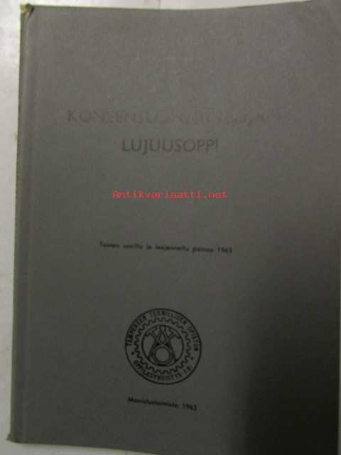 | Saatavilla | 1 kpl | | Julkaisuvuosi | 1963 | | Sivuja | 158 | | Painos | 2. uusittu ja laajennettu | | Kunto | K2 | | Sidonta/painoasu | Nidottu (pehmeäk.) | | Kielet | Suomi |