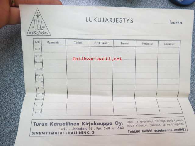 Kansallinen Kirjakauppa Oy -lukujärjestys