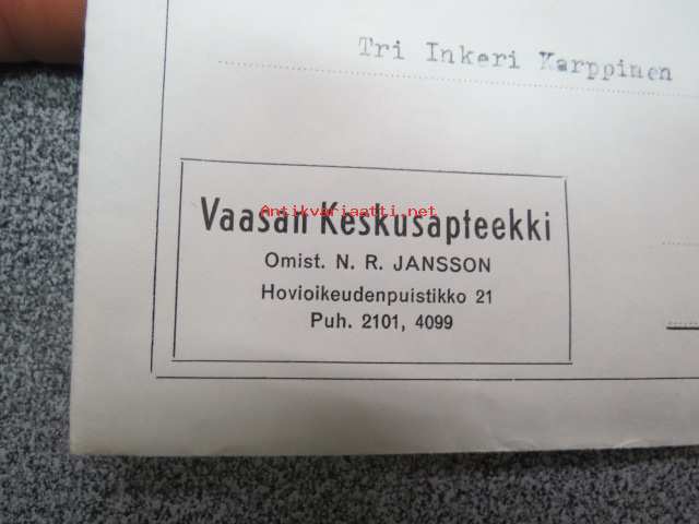 Vaasan Keskusapteekki -kirjekuori
