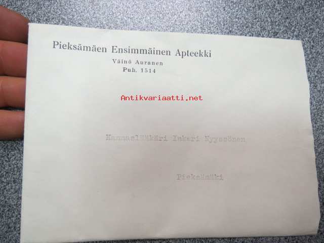 Pieksämäen Ensimmäinen Apteekki -kirjekuori