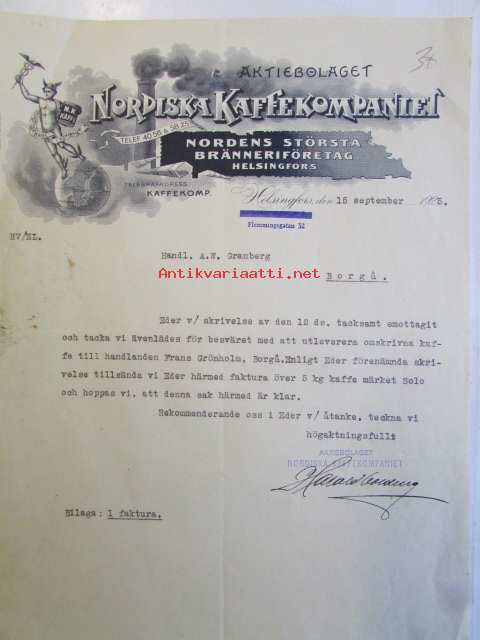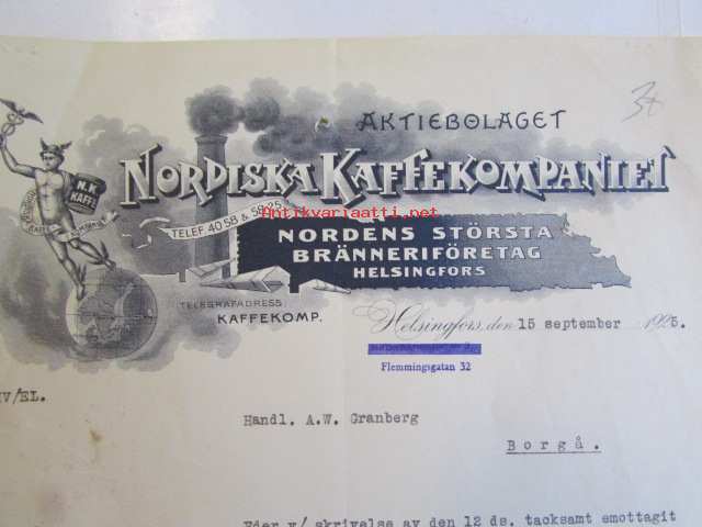Nordiska Kaffekompaniet, Helsingfors 15 septemper 1925 -laskun liite