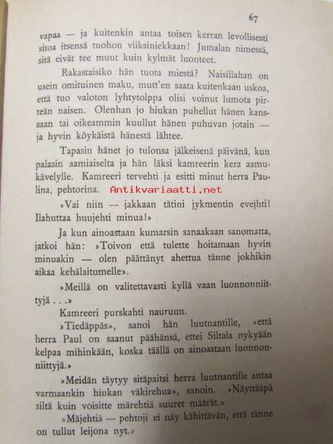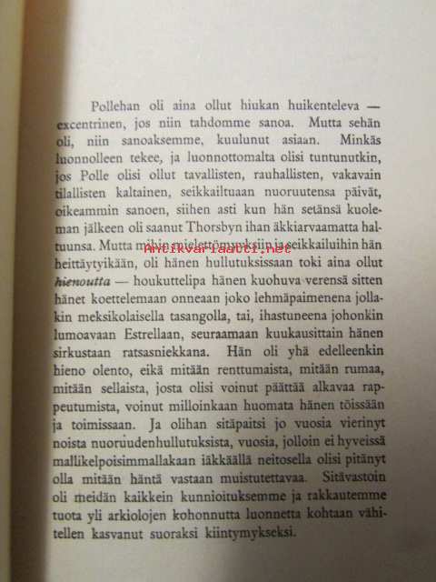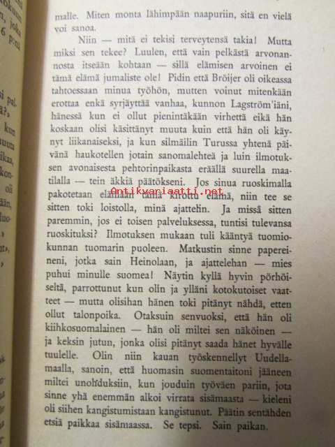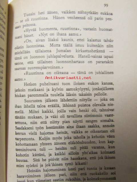 | Saatavilla | 1 kpl | | Julkaisuvuosi | 1960 | | Sivuja | 213 | | Painos | 5. | | Kunto | K2 | | Sidonta/painoasu | Nidottu (pehmeäk.) | | Kielet | Suomi |
