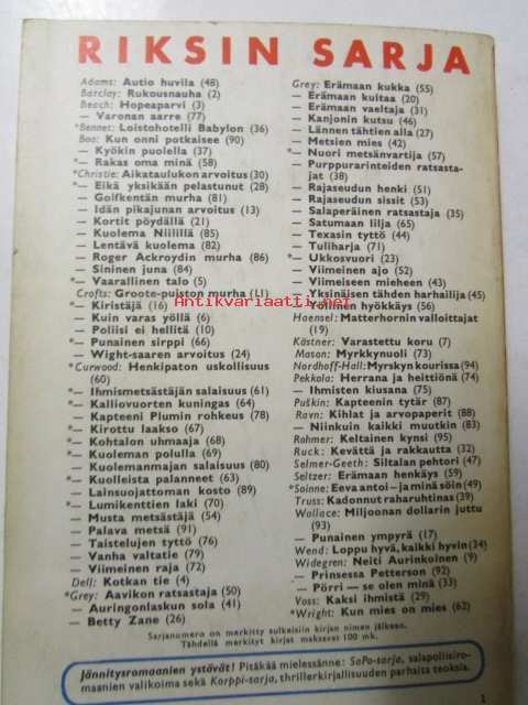 Siltalan pehtoori -Riksin sarja nr 47 kansikuvitus Eeli Jaatinen