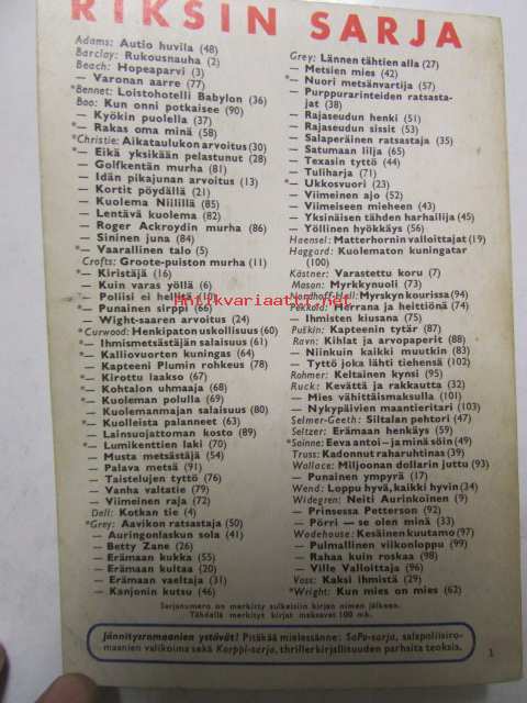| Saatavilla | 1 kpl | | Julkaisuvuosi | 1960 | | Sivuja | 205 | | Painos | 2. | | Kunto | K2 | | Sidonta/painoasu | Nidottu (pehmeäk.) | | Kielet | Suomi |