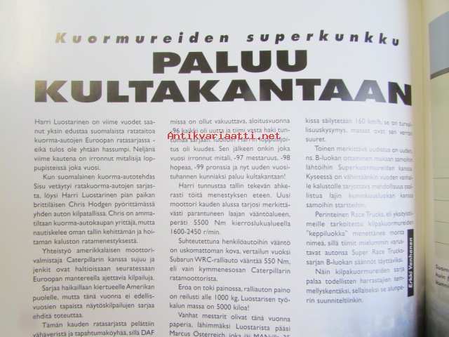 | Saatavilla | 1 kpl | | Julkaisuvuosi | 2000 | | Sivuja | 177 | | Painos | 1. | | Kunto | K3 | | Sidonta/painoasu | Kuvitettu kovakantinen | | ISBN | 951-98236-2-X | | Kielet | Suomi |