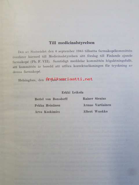 Finska farmakopén 1956 - Finska farmakopén sjunde upplaga