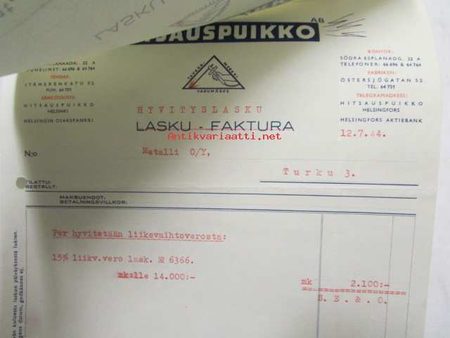 OY Hitsauspuikko AB, Turku 22.6.1944 - asiakirja