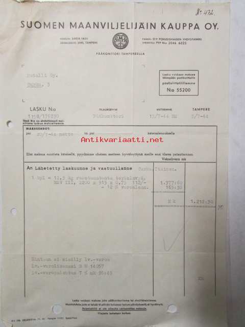 Suomen Maanviljelijäin Kauppa OY, Turku heinäkuun 15. 1944 -asiakirja