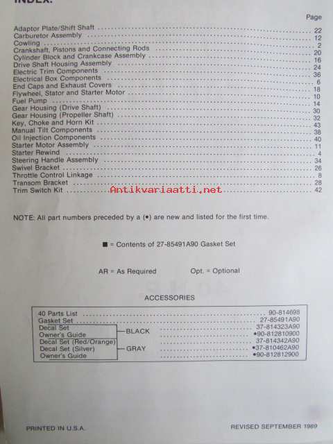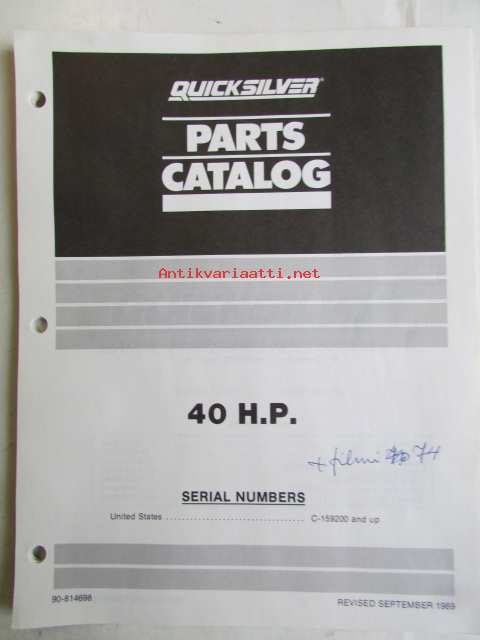 Quicksilver parts catalog 40 H.P. -Katso tarkemmat malli merkinnät kuvasta