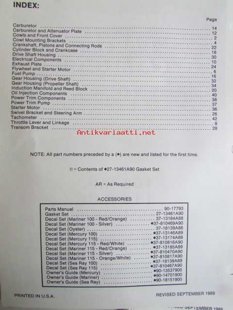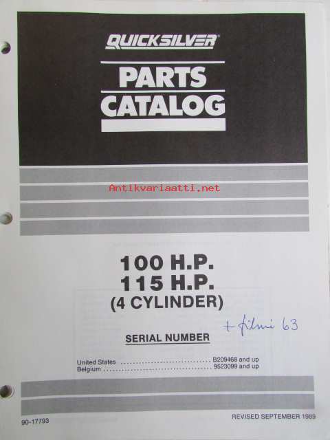 Quicksilver parts catalog 100 H.P. / 115 H.P. -Katso tarkemmat malli merkinnät kuvasta
