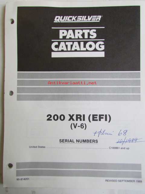 Quicksilver parts catalog 200 XRI (EFI) (V-6) -Katso tarkemmat malli merkinnät kuvasta