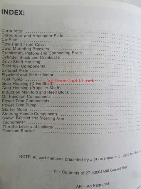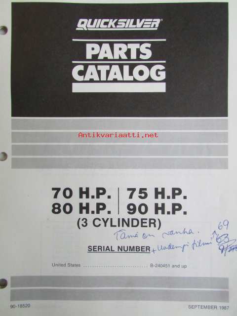 Quicksilver parts catalog 70 H.P./ 75 H.P./80 H.P./ 90 H.P. -Katso tarkemmat malli merkinnät kuvasta