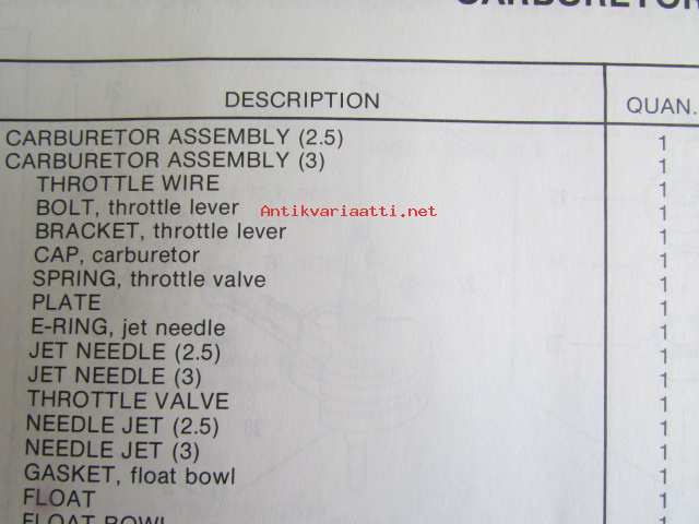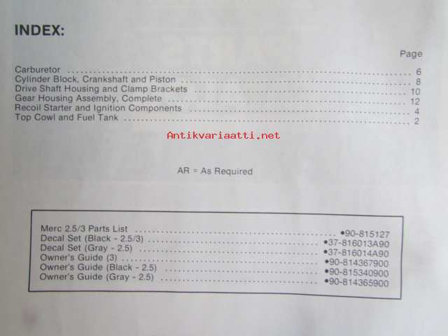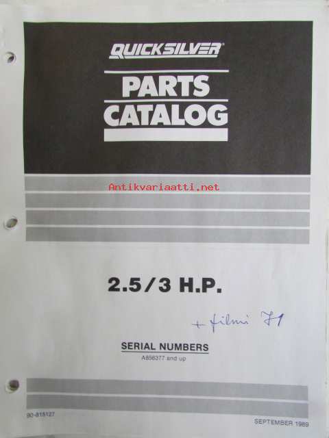 Quicksilver parts catalog 2.5/3 H.P. -Katso tarkemmat malli merkinnät kuvasta