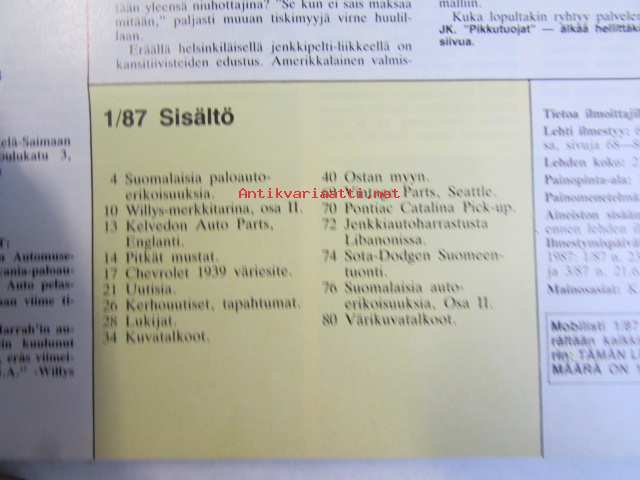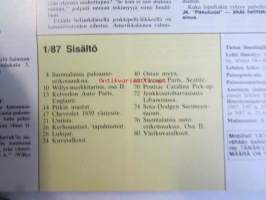 Mobilisti 1987 nr 1 -Lehti vanhojen autojen harrastajille, sisällysluettelo löytyy kuvista.