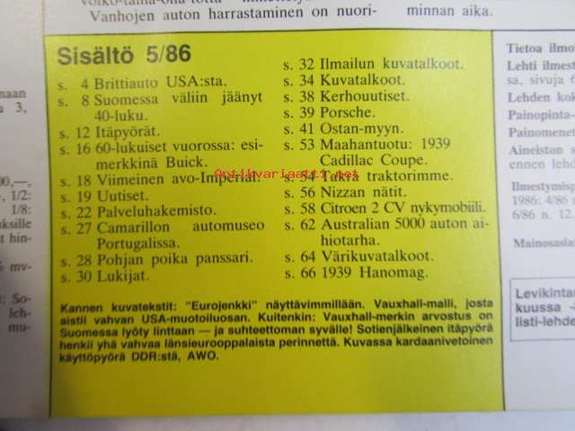 Mobilisti 1986 nr 5 -Lehti vanhojen autojen harrastajille, sisällysluettelo löytyy kuvista.