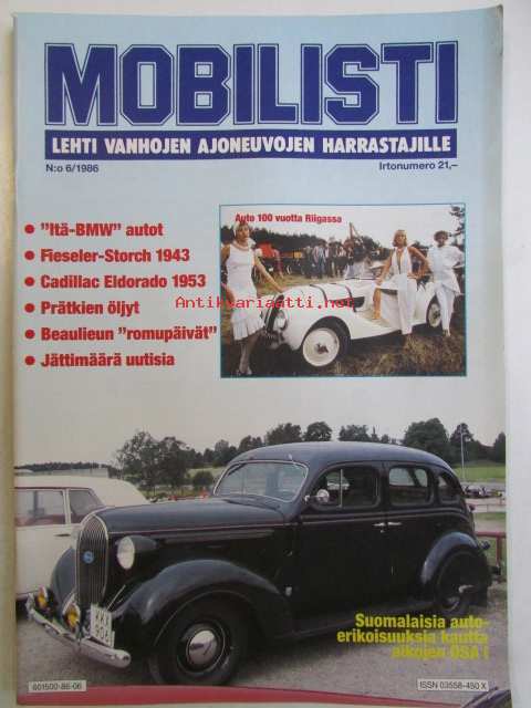 Mobilisti 1986 nr 6 -Lehti vanhojen autojen harrastajille, sisällysluettelo löytyy kuvista.