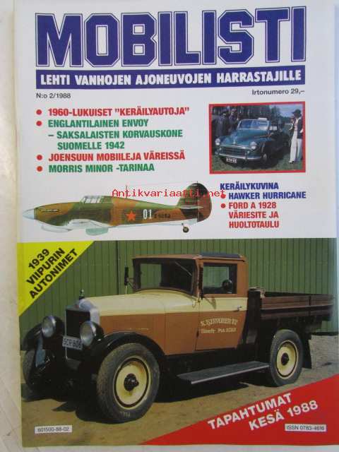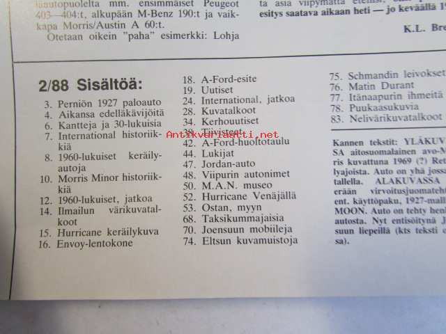 Mobilisti 1988 nr 2 -Lehti vanhojen autojen harrastajille, sisällysluettelo löytyy kuvista.