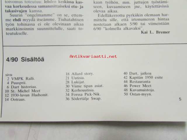 Mobilisti 1990 nr 4 -Lehti vanhojen autojen harrastajille, sisällysluettelo löytyy kuvista.