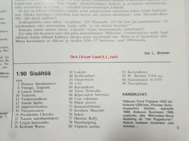 Mobilisti 1990 nr 1 -Lehti vanhojen autojen harrastajille, sisällysluettelo löytyy kuvista.