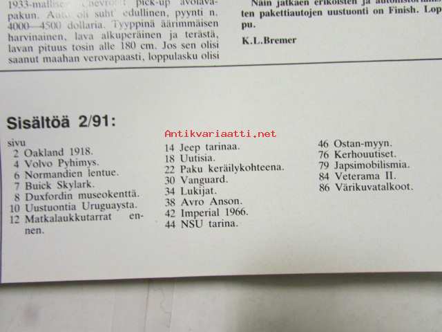 Mobilisti 1991 nr 2 -Lehti vanhojen autojen harrastajille, sisällysluettelo löytyy kuvista.
