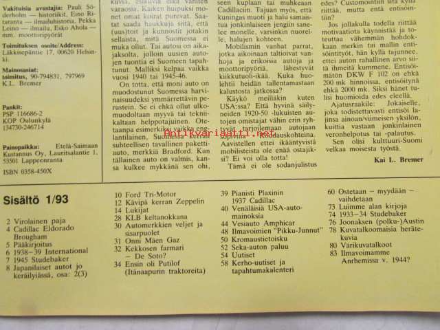 Mobilisti 1993 nr 1 -Lehti vanhojen autojen harrastajille, sisällysluettelo löytyy kuvista.