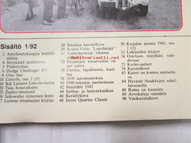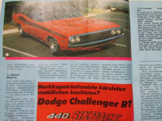 Mobilisti 1992 nr 1 -Lehti vanhojen autojen harrastajille, sisällysluettelo löytyy kuvista. Dodge Challenger RT