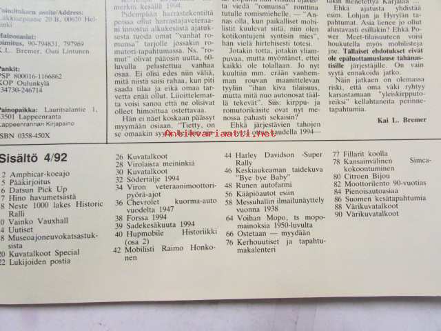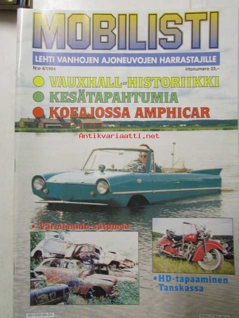 Mobilisti 1994 nr 4 -Lehti vanhojen autojen harrastajille, sisällysluettelo löytyy kuvista.