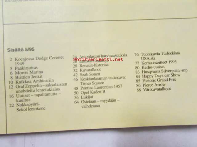 Mobilisti 1995 nr 5 -Lehti vanhojen autojen harrastajille, sisällysluettelo löytyy kuvista.