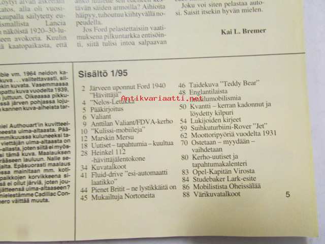 Mobilisti 1995 nr 1 -Lehti vanhojen autojen harrastajille, sisällysluettelo löytyy kuvista.
