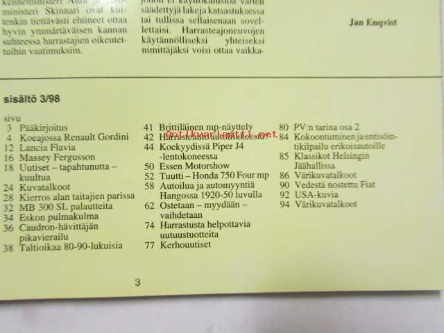 Mobilisti 1998 nr 3 -Lehti vanhojen autojen harrastajille, sisällysluettelo löytyy kuvista.