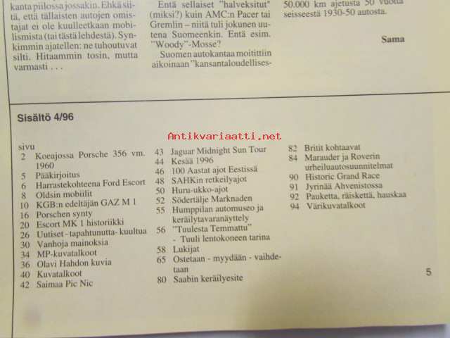 Mobilisti 1996 nr 4 -Lehti vanhojen autojen harrastajille, sisällysluettelo löytyy kuvista.